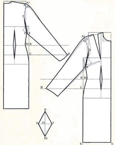 После выполнения базовой конструкции мы можем конструировать различные варианты платья. Платье-редингот характеризуется прилеганием по линии талии и расклешением внизу. Подробнее...
